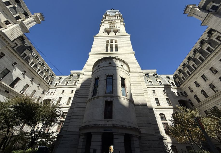 We are at the base of the City Hall tower, measuring 548 ft. including the statue of the William Penn atop its tower.