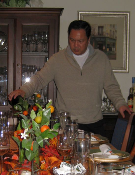 A few minutes before we sat down Phuc poured the first bottle of wine.