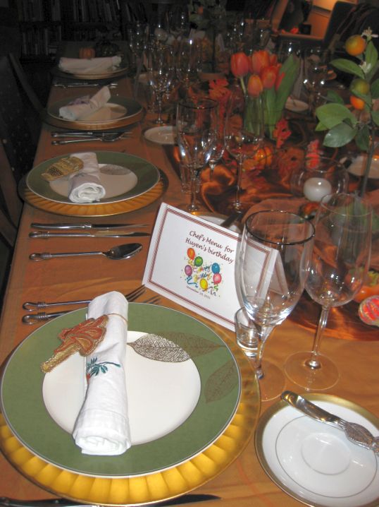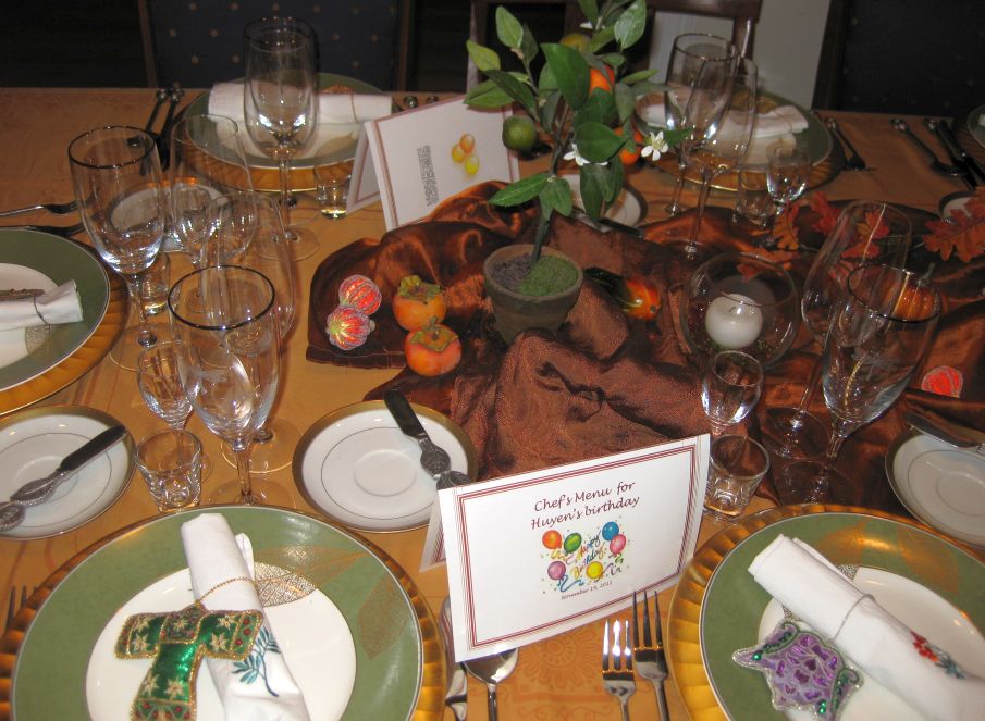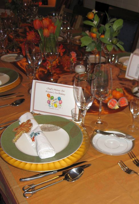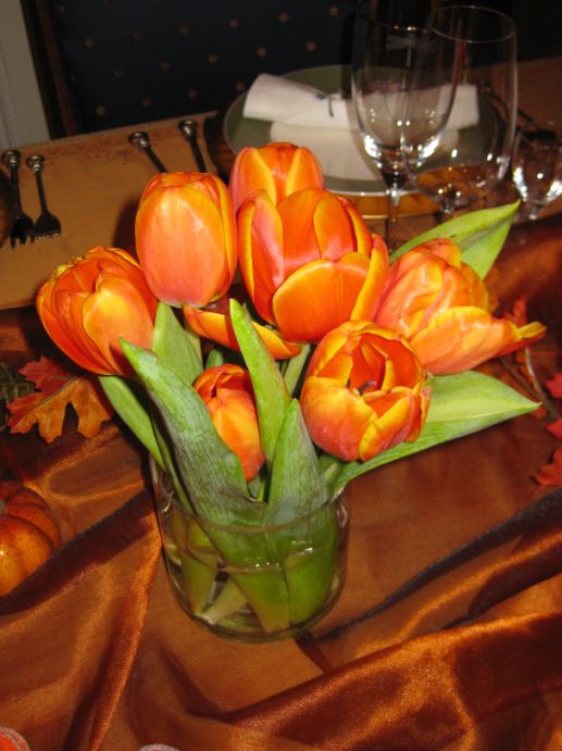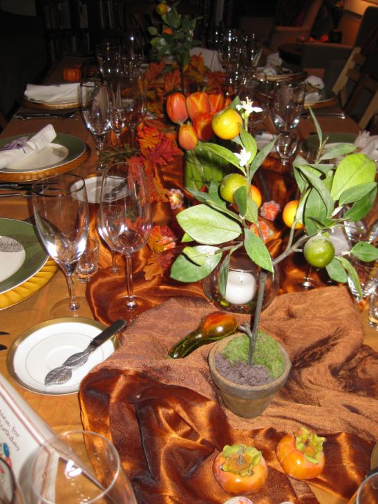 The theme I choose to decorate the table is the color of autumn, where the leaves are transformed into a vivid palette of red, orange, gold, and brown. To me these colors are rich, beautiful and simply gorgeous to look at.