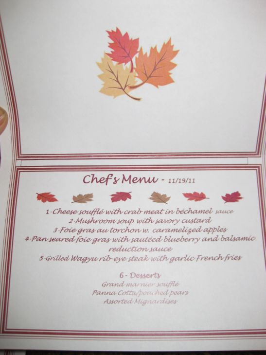 Phuc and I we teamed to co-host a nice sit down dinner For Huyen's birthday. Phuc called his purveyor and was able to score a very limited highest grade Wagyu rib eye steaks for the party. Knowing we can only get a very limited supply of wagyu beef (14 pieces to be exact), I decided we should have a small an intimate party for Huyen. My latest culinary adventure at the Plumed Horse was so memorable that I wanted to re-create the same magic. The menu is inspired by the Plumed Horse but of course a put a few twists by incorporating a few recipes from the French Laundry and hopefully this will be a memorable dinner.