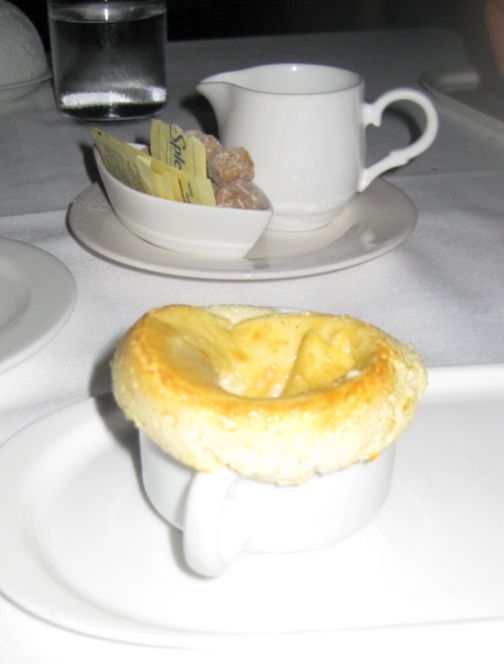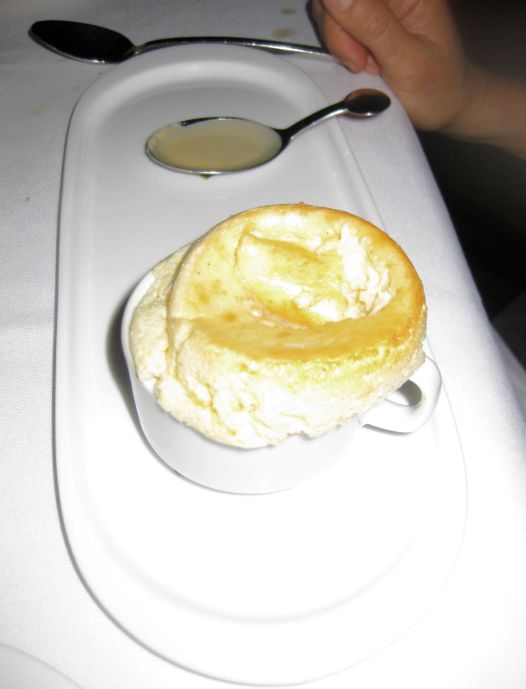 I went with the Grand Marnier soufflé with praline Anglaise sauce.