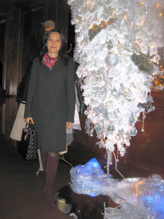 Our reservation was at 8:00PM but when we got there our table was not ready yet so I gave Kevin a little tour. In the lobby/entrance, an upside down Christmas tree is hanging on the ceiling. |
