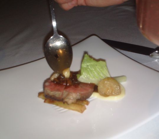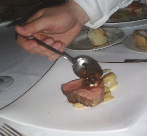 Here the waiter is pouring some jus on the meat.