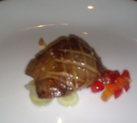 Seared Artisan Foie Gras, mustard fruits, salted almond brittle in a reduced duck jus with Riesling.