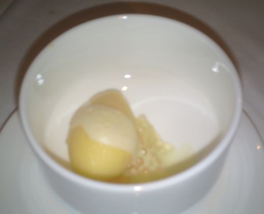Cleansed palate -Sorbet on a bed of tapioca. There is a cheese dish but we forgot to the take a picture! |