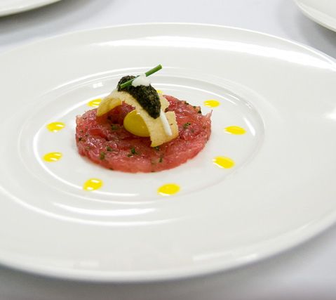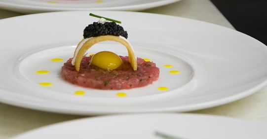 Ahi Tuna tartare with quail egg, brioche toast and Tsar Nicoulai caviar.