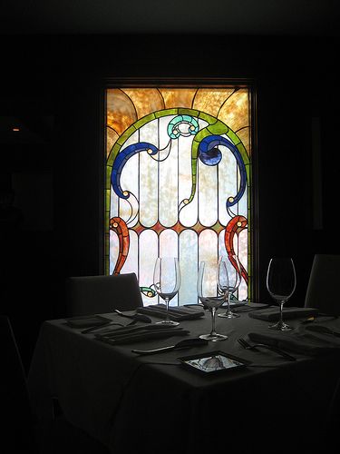 On left is the Gold private room and it can hold about 30 people and on the right is the Rose room that accommodates up to 24 guests. The rose room gets its name from the etched windows that glow with natural light. The room is reminiscent of the Old World Mahogany paneling and a stained windows that reflect the look of the restaurant in the past but other than that everything inside the restaurant has changed.