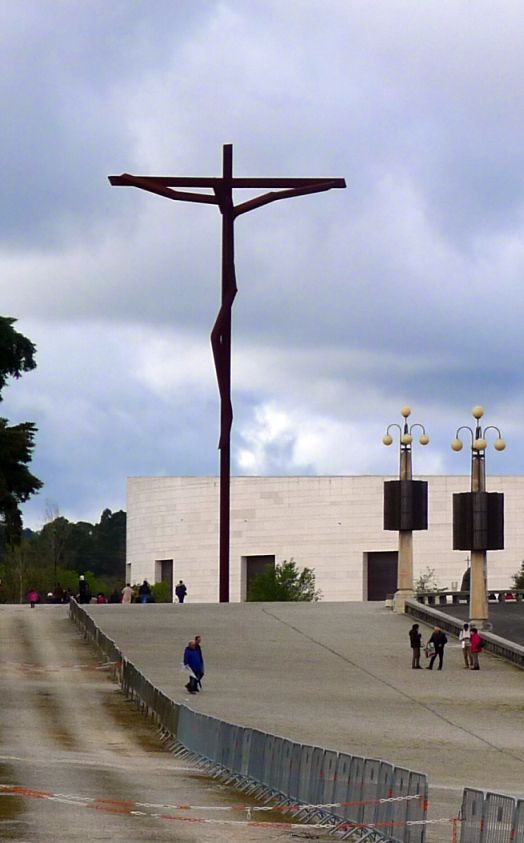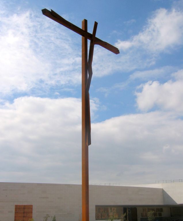 A tall and modern looking cross by German artist Robert Schad representing the crucified Jesus is made out of bronze and is 50-meters (164 feet) high.