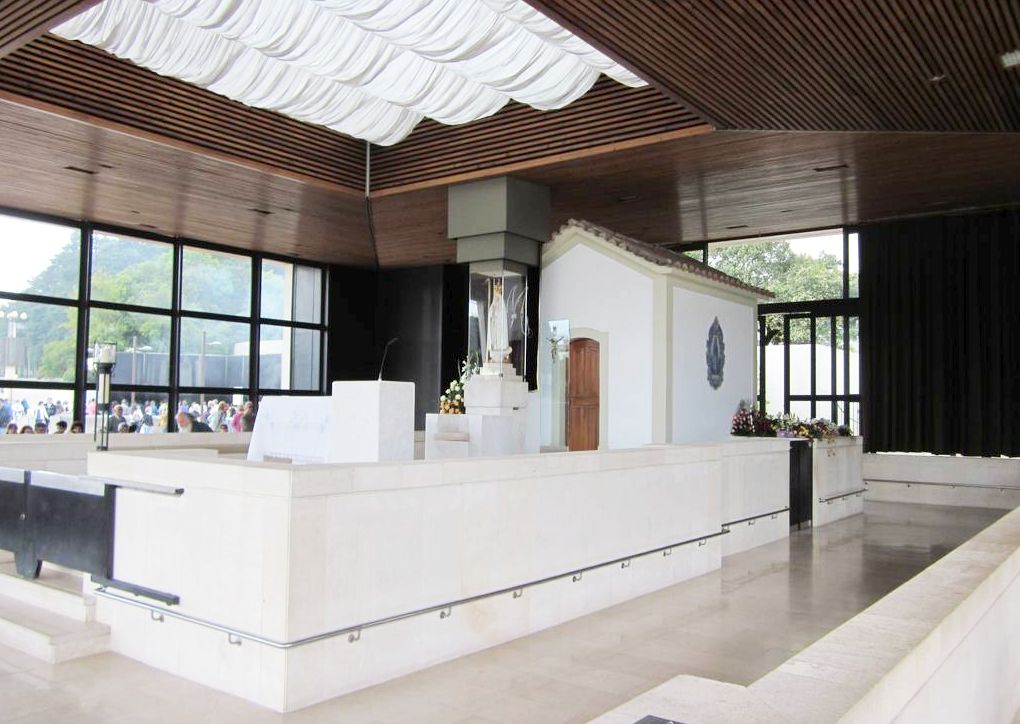 This Chapel was the first building to be constructed in the Cova da Iria in 1918. It was built in the place indicated by the Virgin Mary. The Virgin Mary had asked the shepherds to build a chapel in her honor and her image has been sculpted on a marble pillar that marks the exact spot where the little oak stood on which the Virgin appeared to the shepherds on the 13th day of May, June, July, September and October in 1917. The original shrine was anonymously blown up on March 6, 1922, but it was rebuilt that same year. The chapel has been covered by a large pine roof brought from a Russian port in the northern Soviet Union on September 12, 1988. Over time the Sanctuary was extended to accommodate the large numbers of pilgrims.