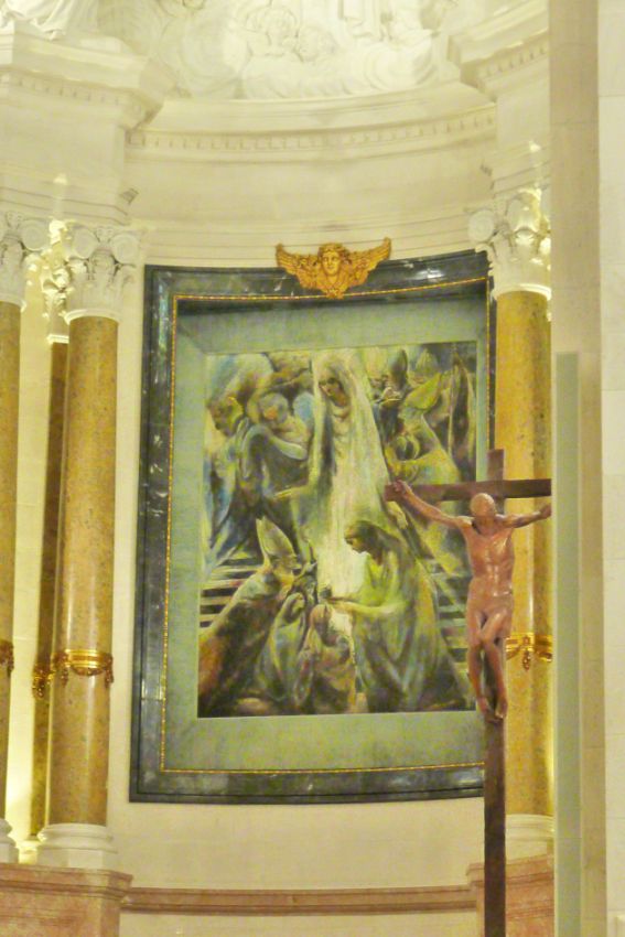 The Chapel of Apparitions is at the very heart of the basilica and the exact location of the apparitions is marked by a marble pillar which holds a statue of the Virgin Mary.