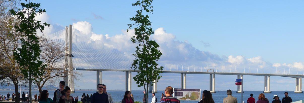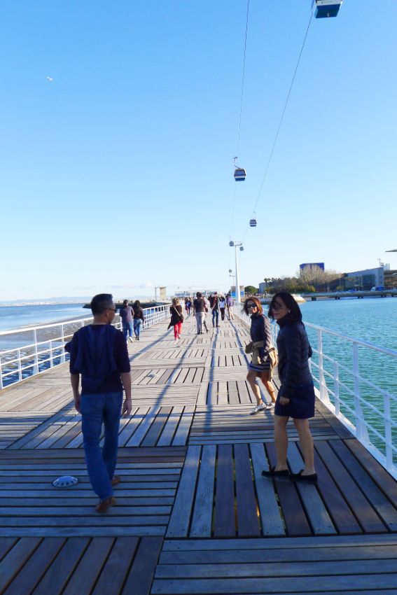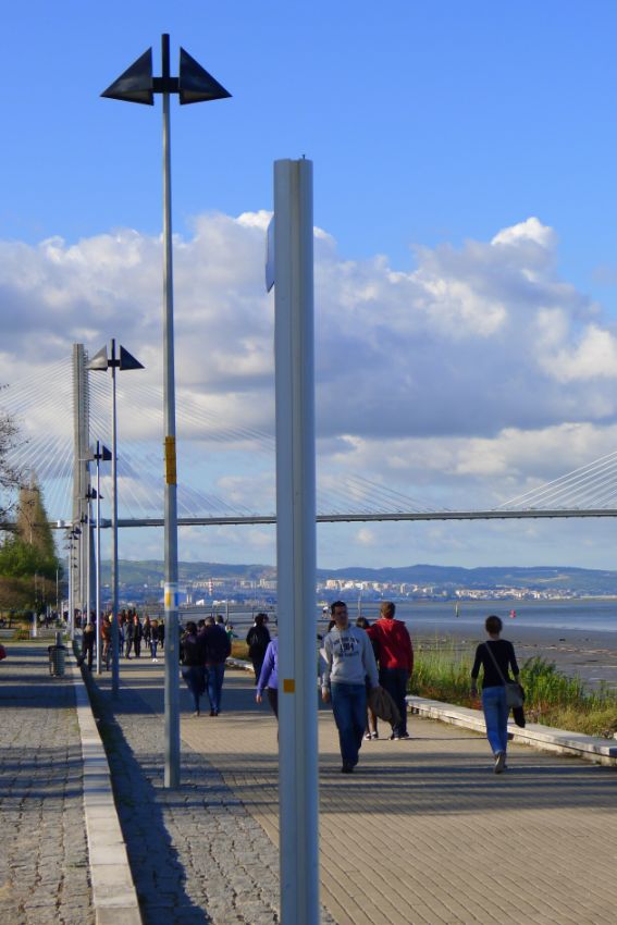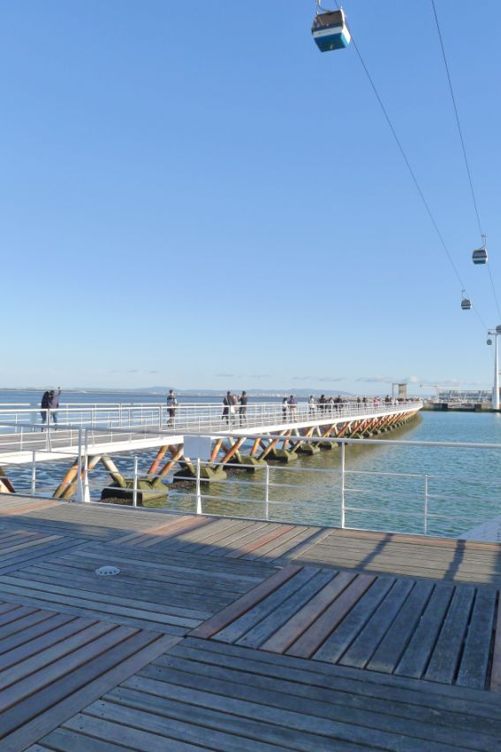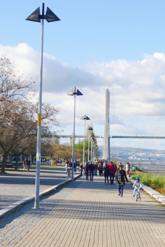 This is the marina and here you get a closer look at the Vasco da Gama bridge Europe's longest bridge (10.7 miles) was opened in 1998 to connect the Expo grounds with the south side of the Tagus river, and to alleviate the traffic jams on Lisbon's only other bridge over the river, the 25th of April bridge (the one that looks like the golden gate bridge).