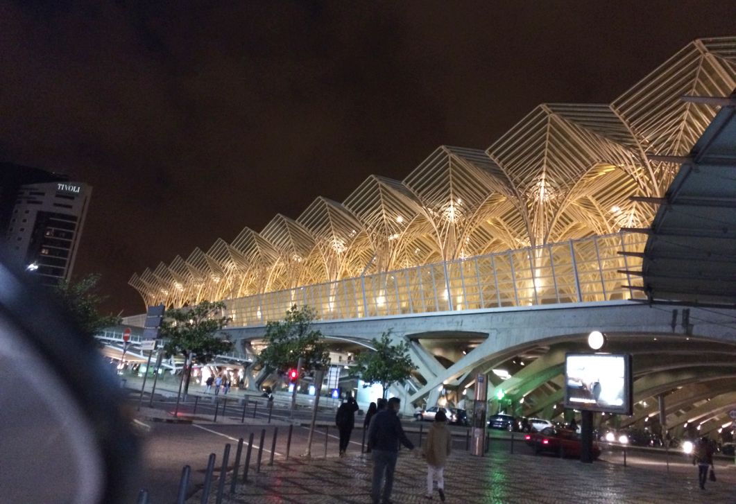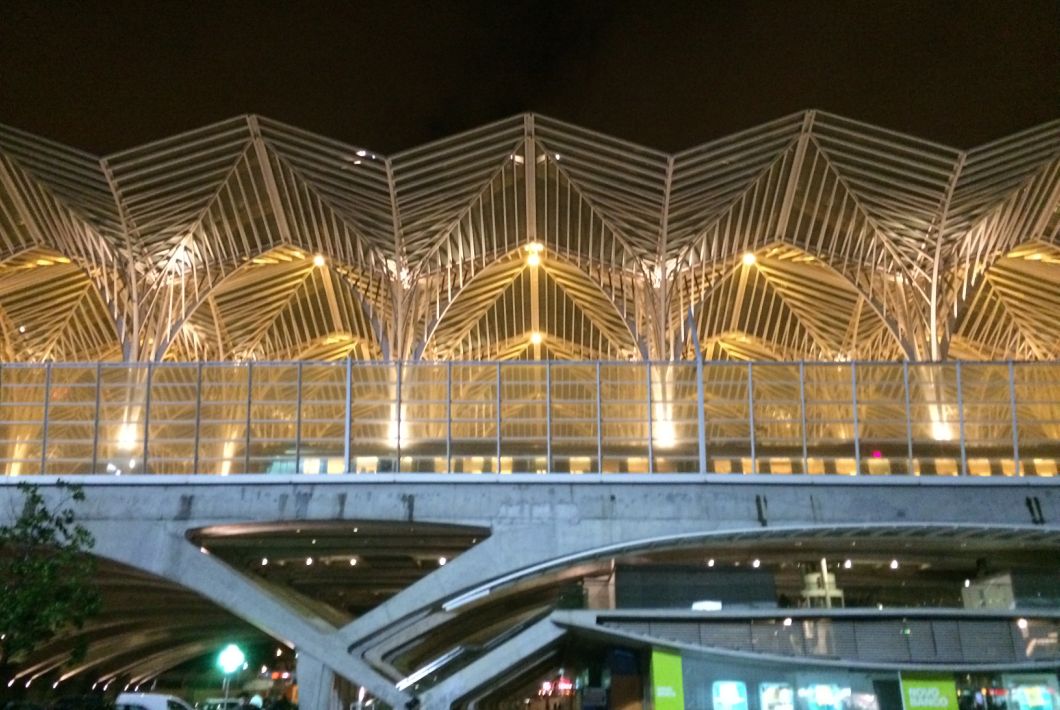 This is the Oriente Station ( Gare do Oriente) at night- this station is in front of the shopping center.
