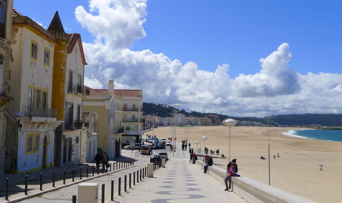 Nazaré is a costal fishing town located on the Atlantic coast, it has long sandy beaches, considered to be among the best beaches in Portugal. The town used to be known for its traditional costumes worn by the fishermen and their wives who wore a traditional headscarf and embroidered aprons over seven flannel skirts in different colors.