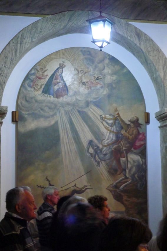 Subsequently, a chapel A Ermida da Memoria, was built very near this spot, over a grotto where stood a small statue of a Black Madonna, brought from Nazareth. Near the chapel one can see the imprint of the horseshoe in the rock.