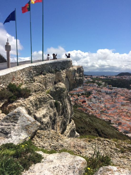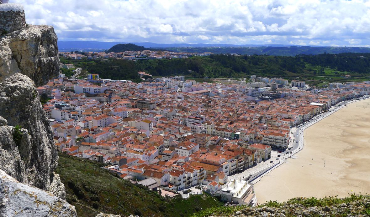 The town of Nazaré below