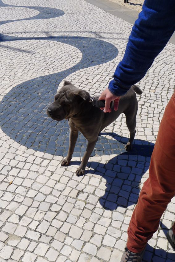Each time we travel we always try to look for a Sharpei like our dog Rocky. This time we encountered a black Chinese Sharpei. We asked if he was friendly and was told that he does not trust stranger.. sound just like Rocky.