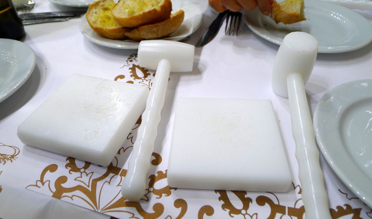 We ordered a crab so the waiter brought out plastic hammer and cutting board so that we can break the shell.