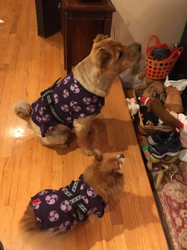 Kevin and Kristie just came back from Japan and they bought Kimonos for Rocky and Foxxy!