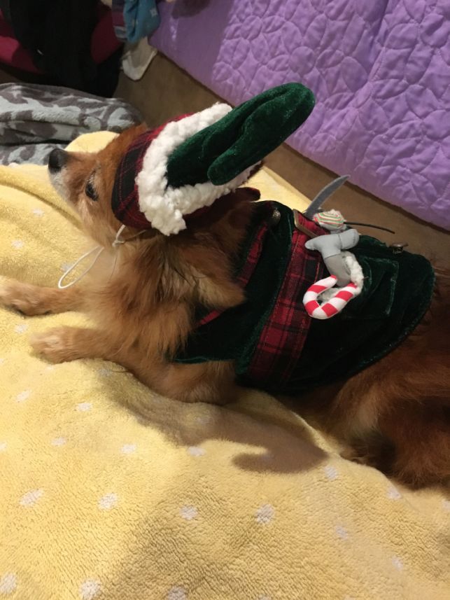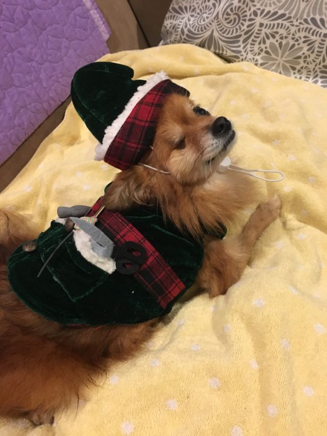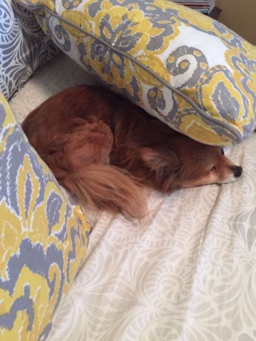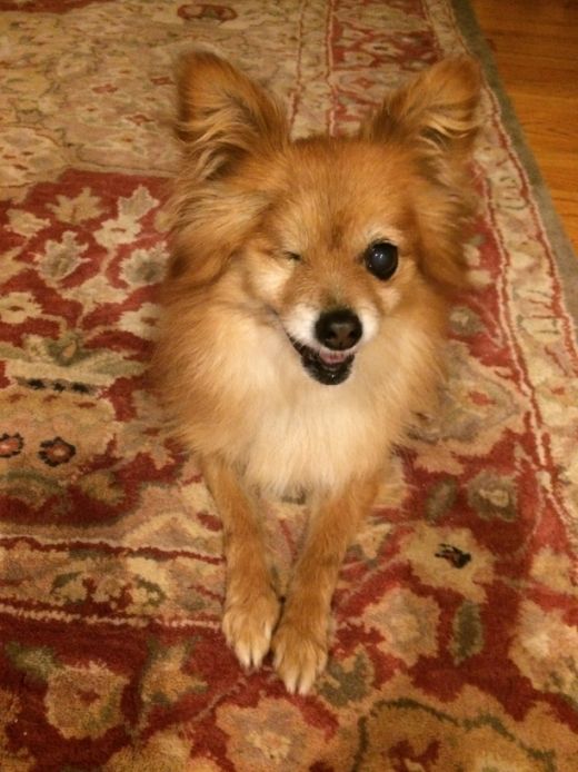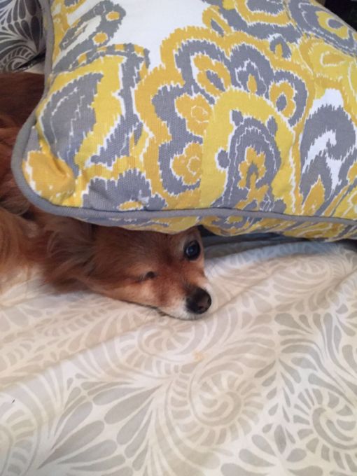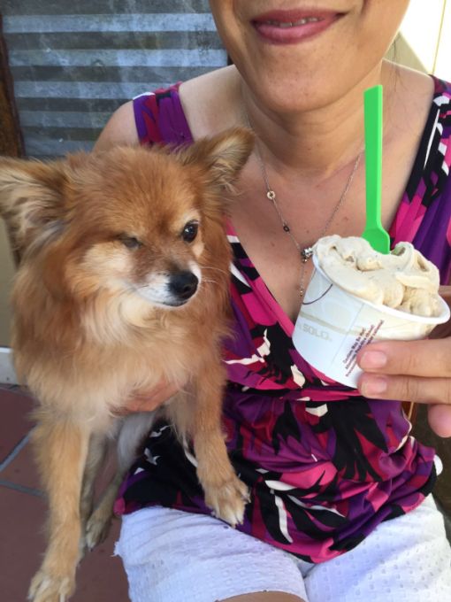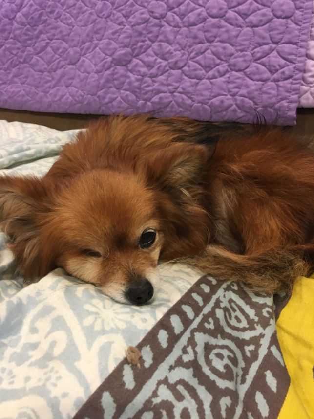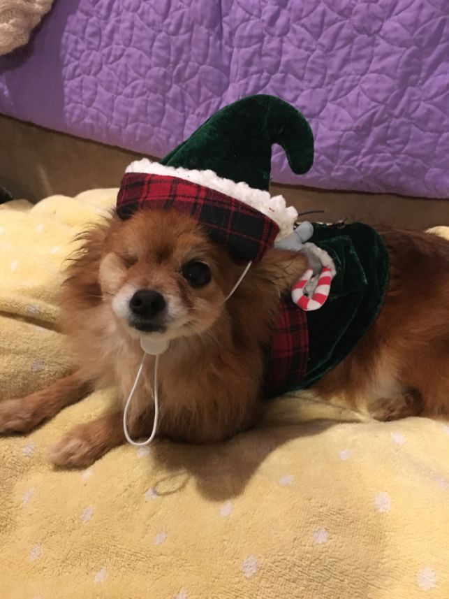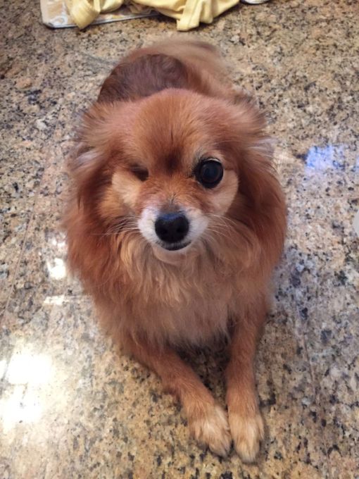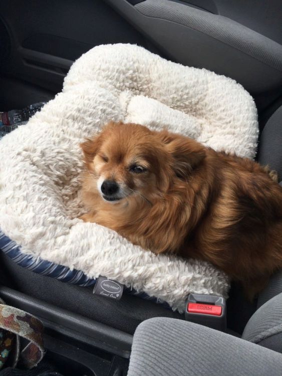 They brought out Foxxy, an 11 year old Pomerian-chichuahua mix. Rocky was very gentle with Foxxy so they asked me if I could foster her until someone adopt her.