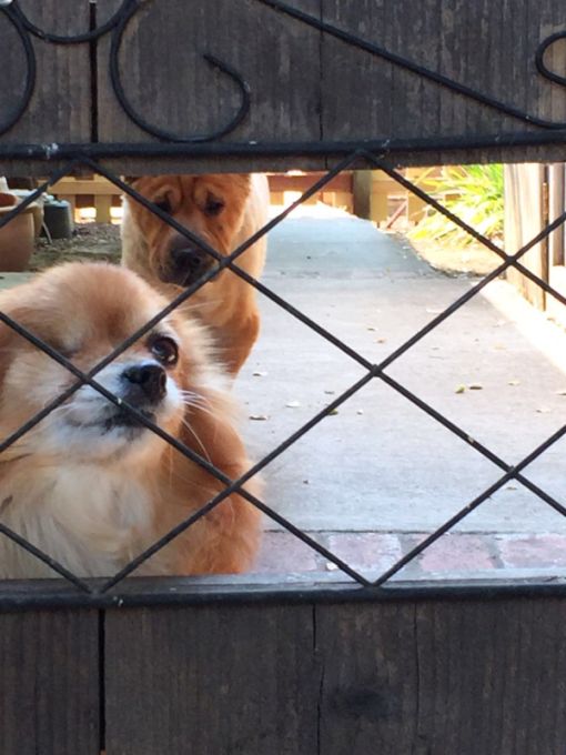 Hoa put an iron window in our backyard door so that Foxxy and Rocky and see out in the street. Every morning I said good bye to them before going to work and both of them with stand next to the window to watch me drive off.
