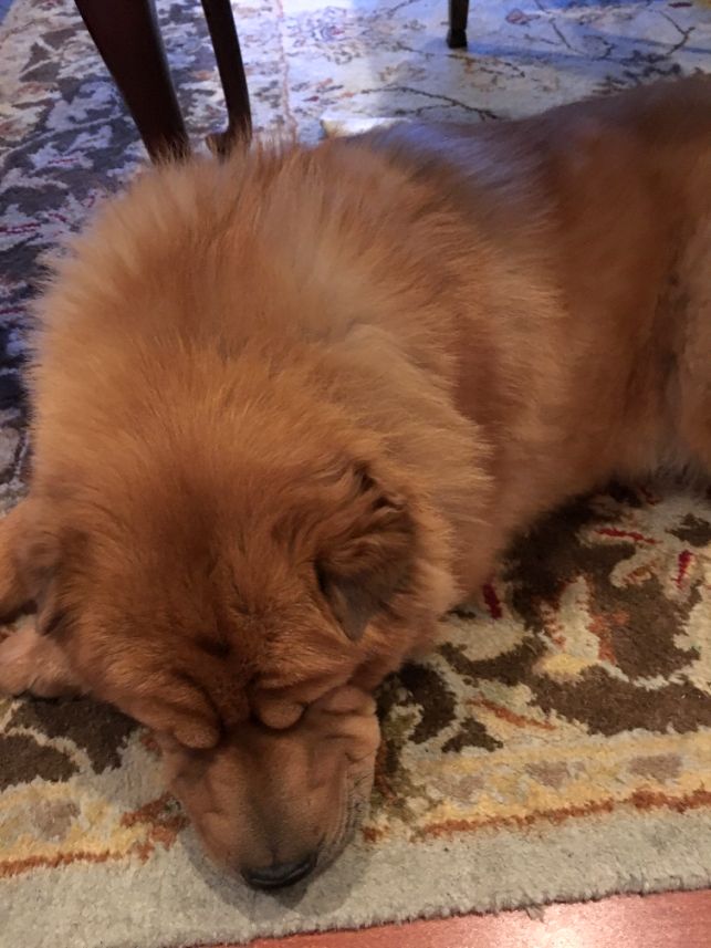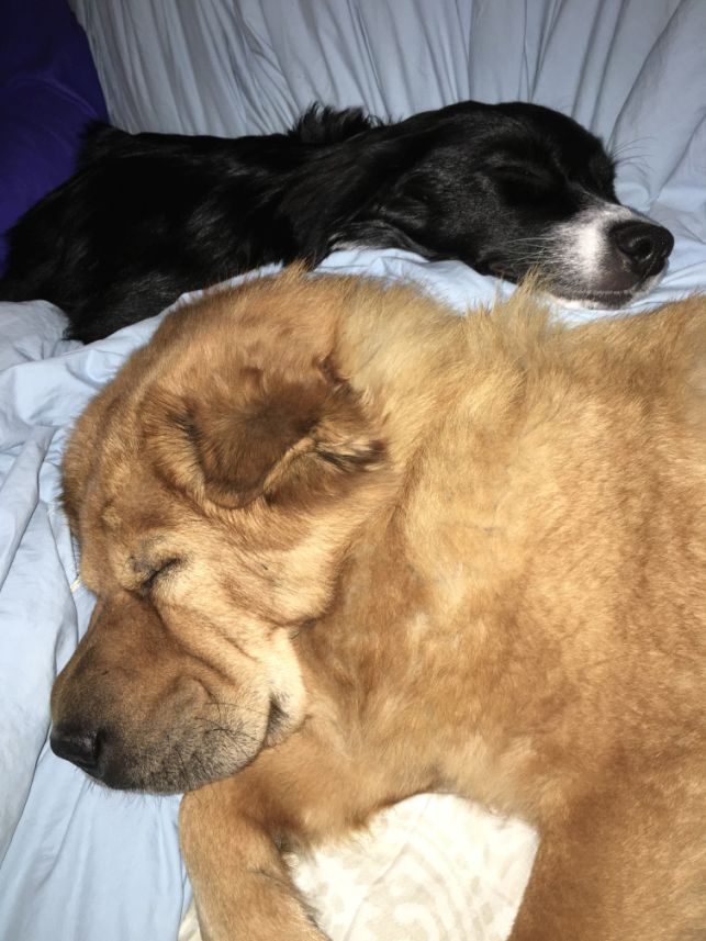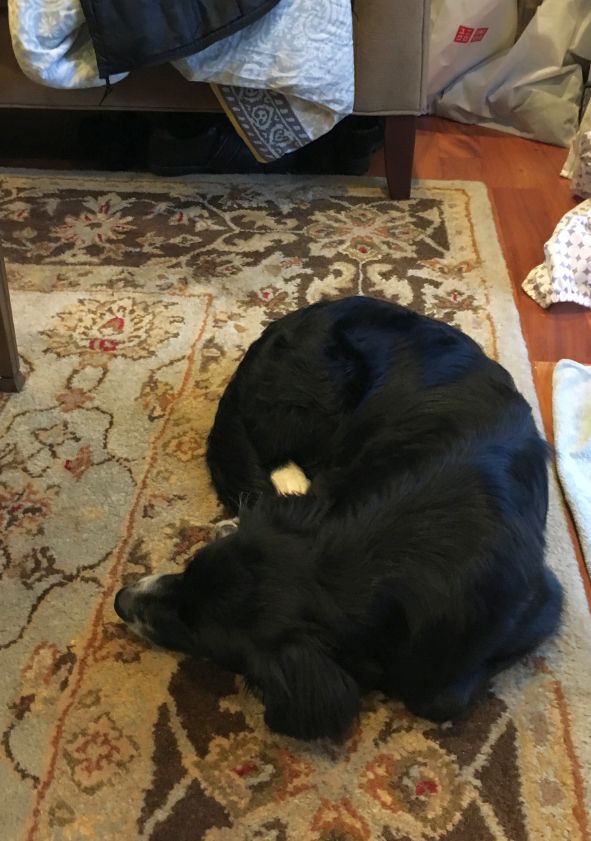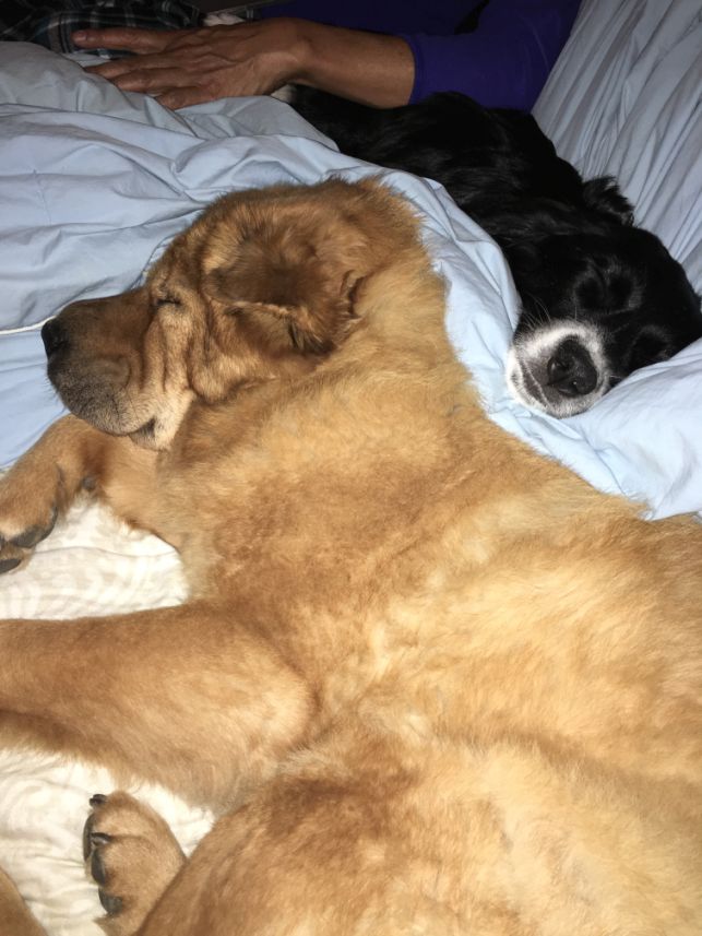 Millie and Rocky played all day! Both are exhausted and are taking a nap.