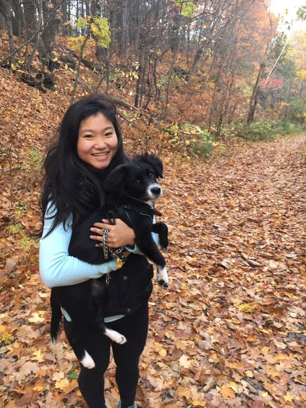Millie taking a hike on a hilltop in Albany.