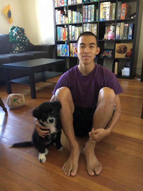 Millie resting on the floor at the apartment in Albany.