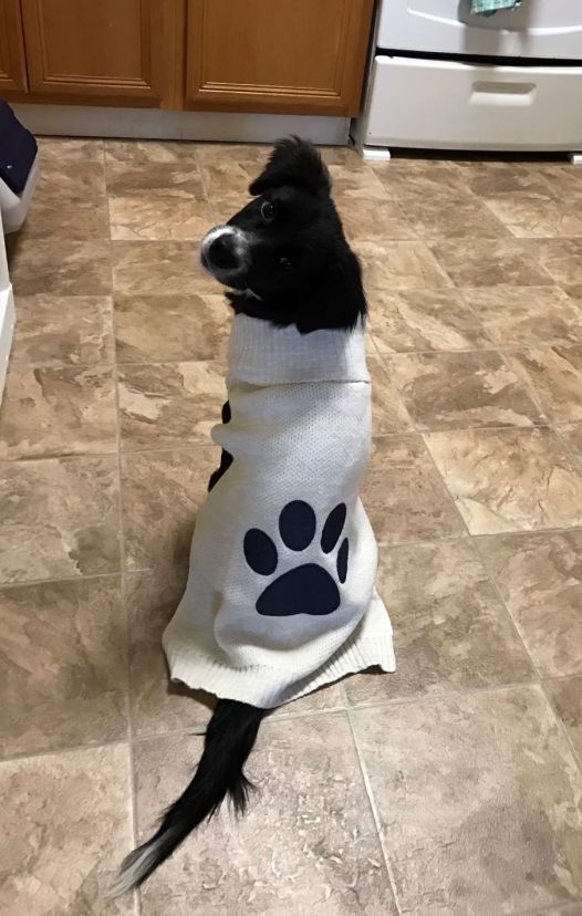 So cute in her new sweater.