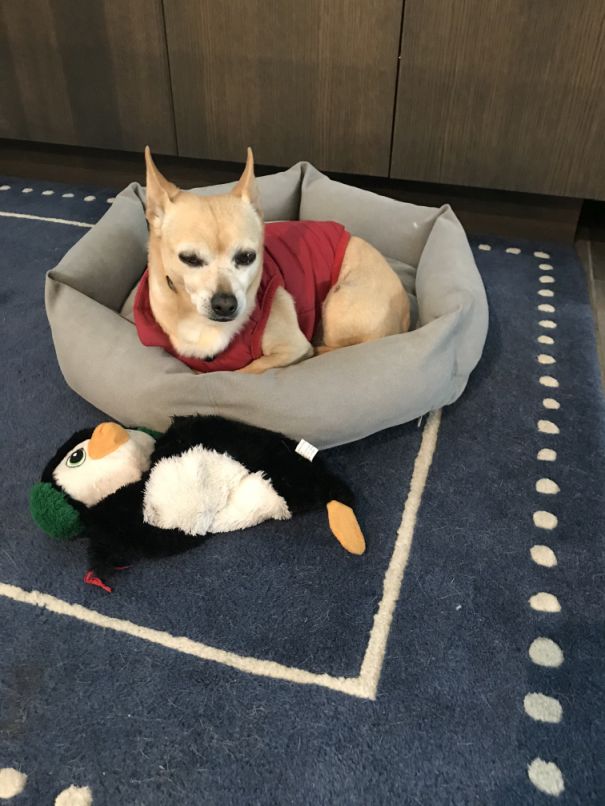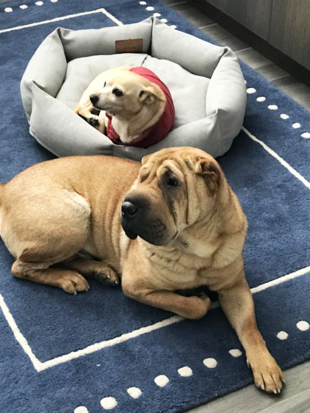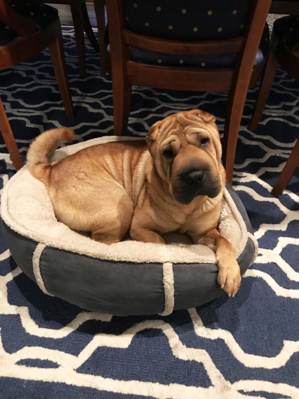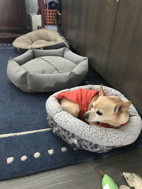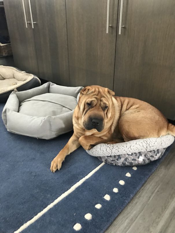 We have 3 beds out ranging from Large, medium and small and somehow Taz picked the smaller bed.