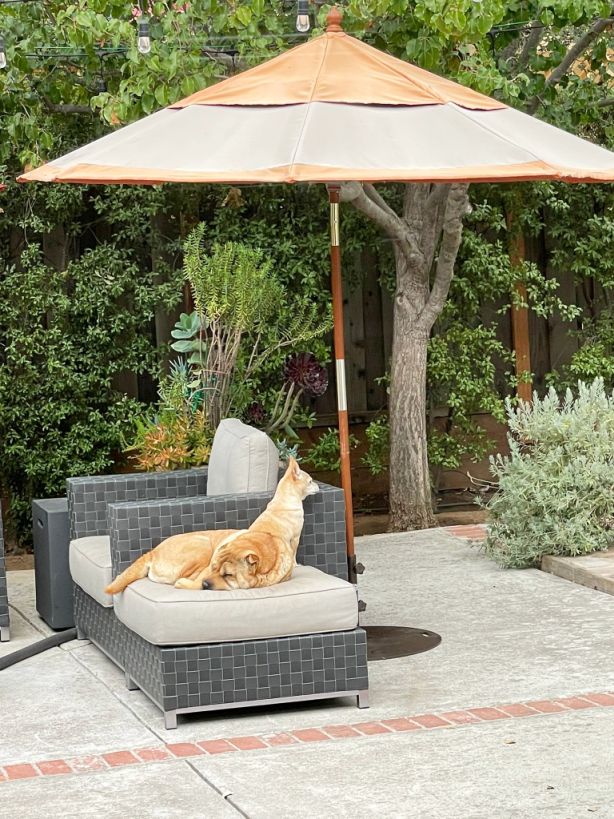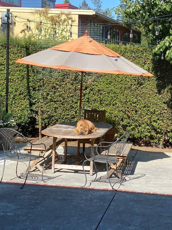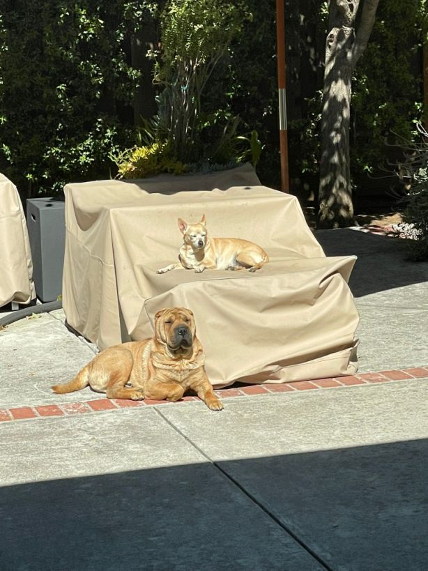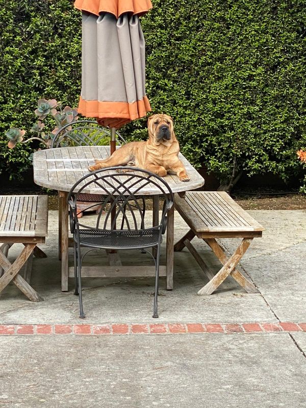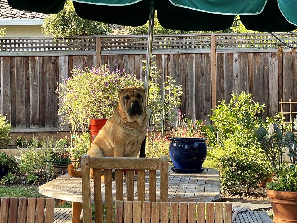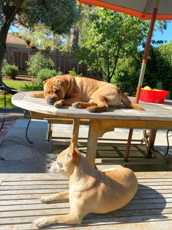Taz learned from Dora to jump up the table in our backyard.