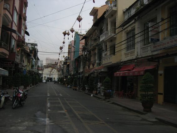 Empty street at 6:30 AM in the morning. Nguyen An Ninh Street, close to Cho (market) Ben Thanh.