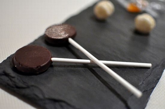 After our desserts, a slate of mignardises arrived along with the check. The dark chocolate lollipops were embedded with crackling Pop Rocks. For those of you who never have Pop rocks candies... chew a couples of times, don't swallow it just leave it in your mouth and then you will hear them pop, they’re like “fireworks in your mouth,” What a nice celebration at the end of the meal |