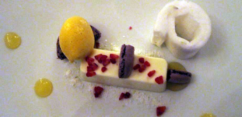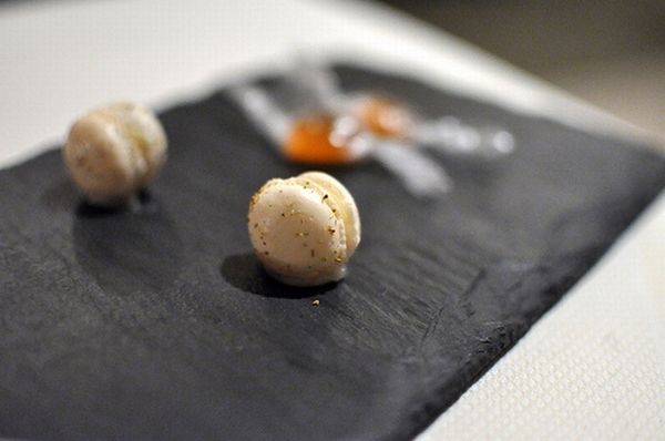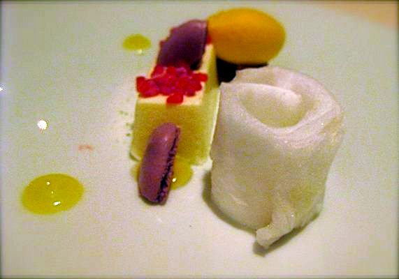 The teeny tiny meyer lemon macarons and passion fruit jellies with edible wrappers (on the right- a bit blurry) were lovely treats as well.