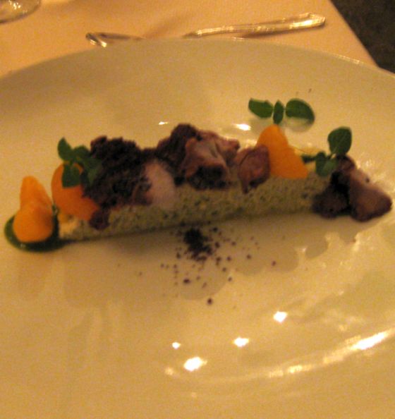 Pistachio Tres Leches with Nitro Chocolate Mousse, Mandarin Orange. Just an okay dessert. I did not like it that much! |