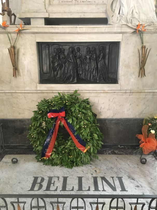 A wreath on Bellini's tomb. |