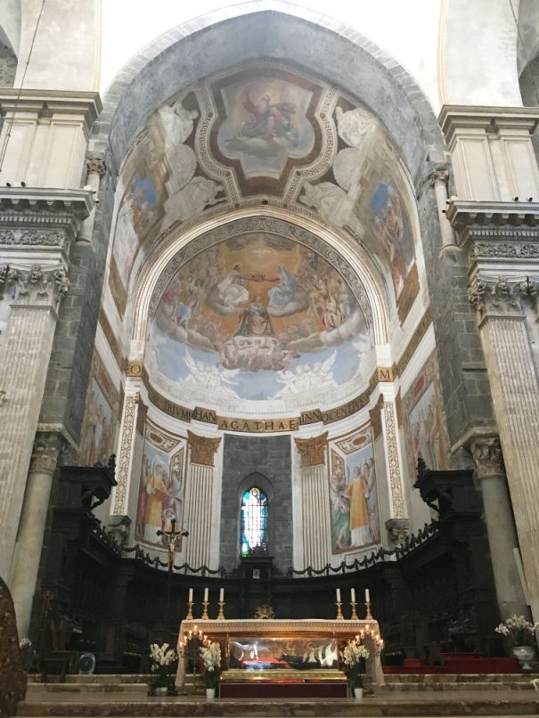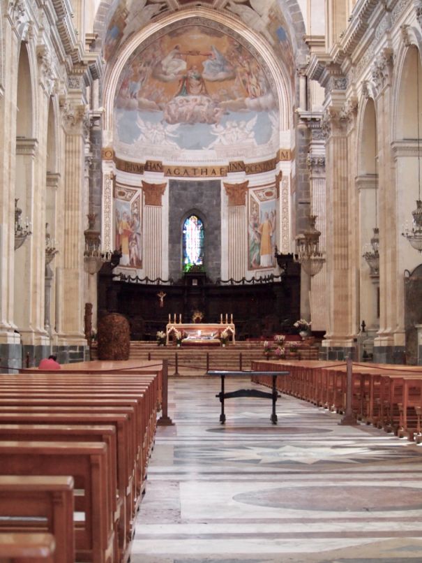 In the center apse of the Cathedral, there are sculptures and Frescos dedicated to the patron Saint Agatha.