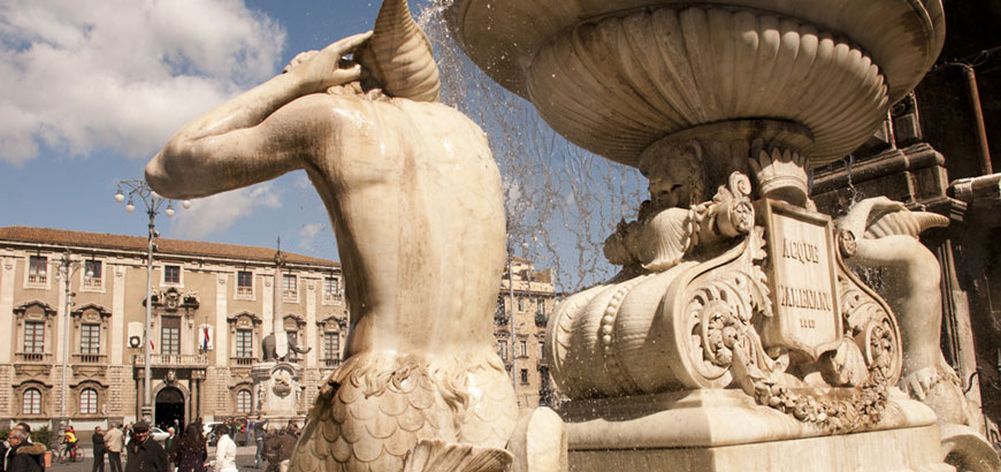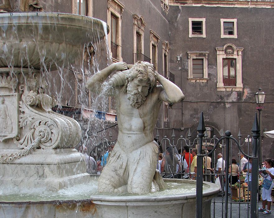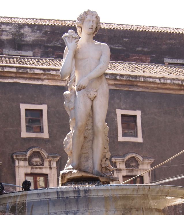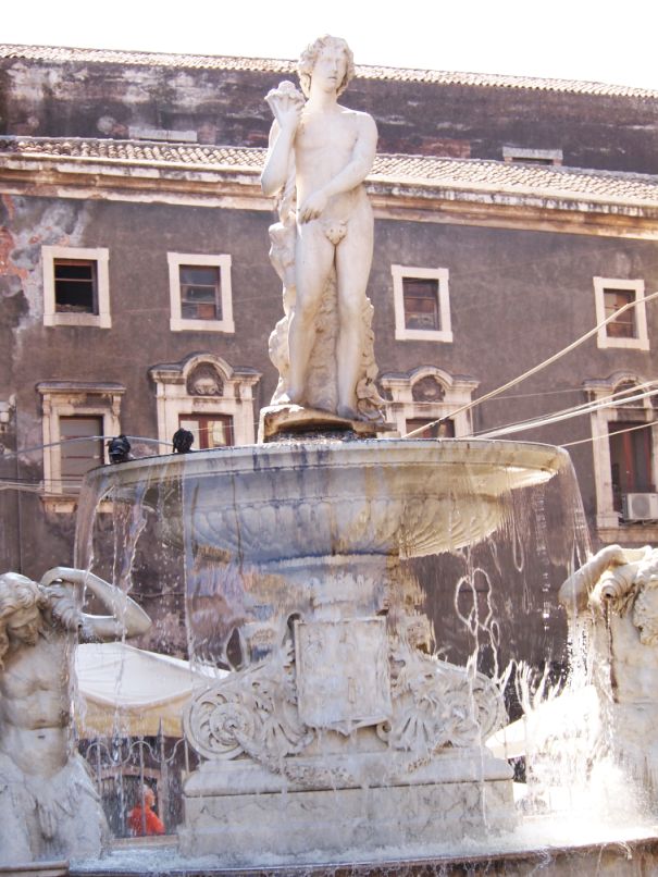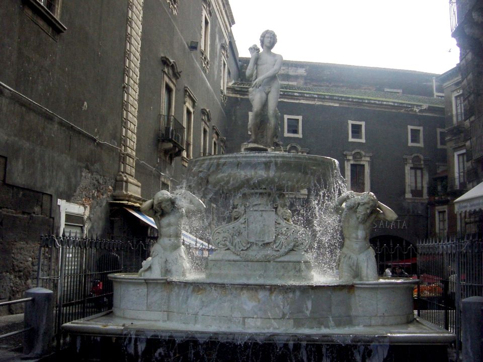 On the South side of the square is the Amenano Fountain, built in 1837 in marble by Tito Angelini and was named after the Amenano river which flows under the city.