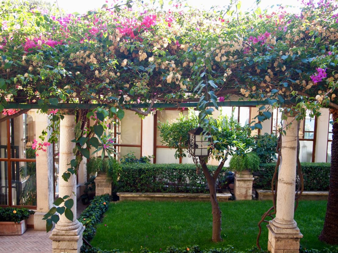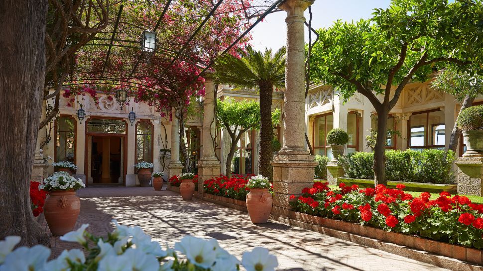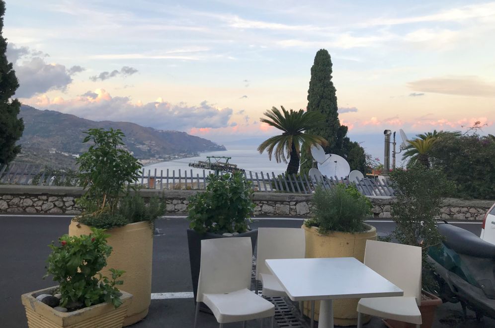 The Grand Hotel Timeo (the nicest hotel in Taormina), located just at the entrance of the Greek theater and was the first hotel to be built in the city with a view across the coast towards Mount Etna and beyond.