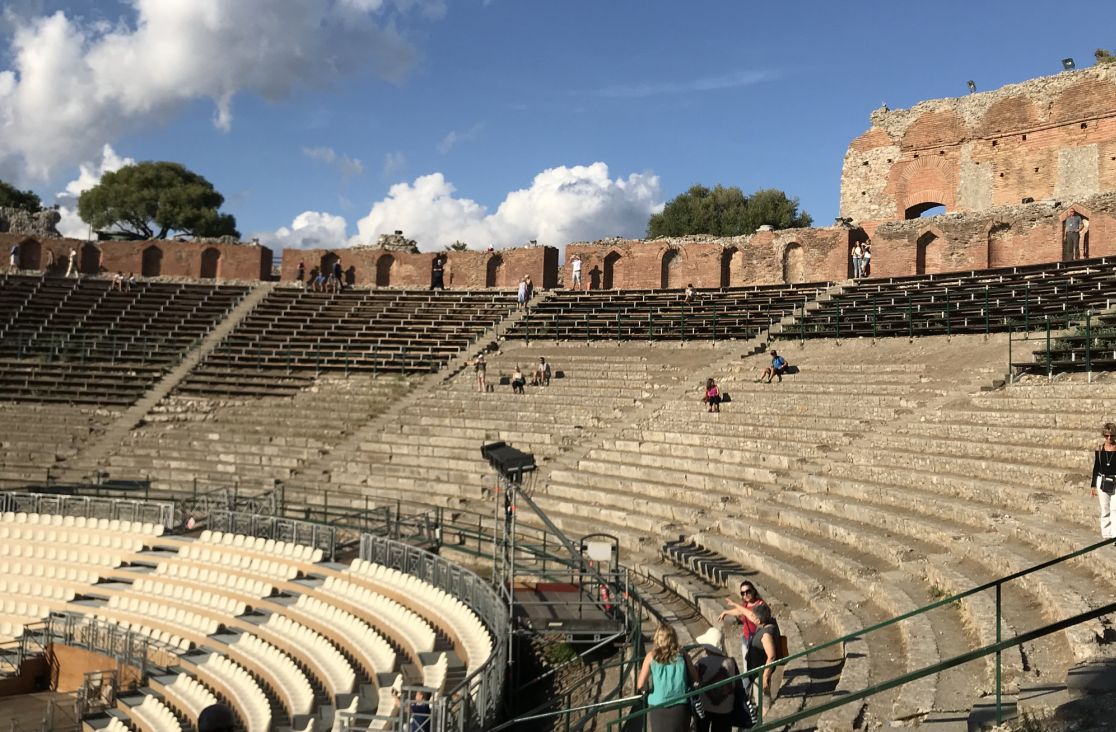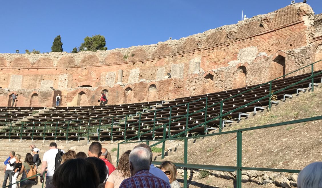 The world famous view of Mount Etna and the sea beyond the theatre is breathtaking.