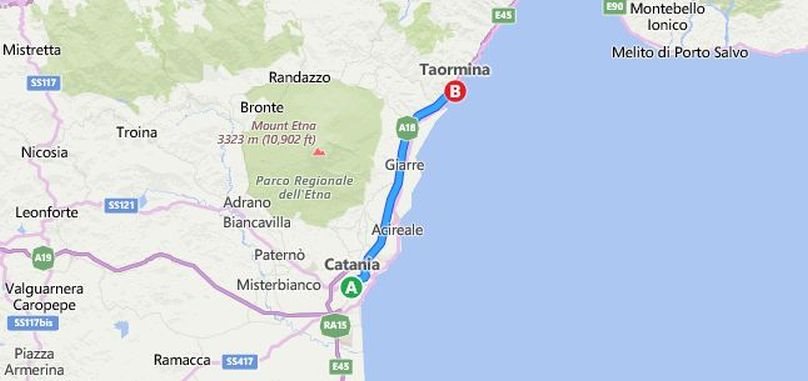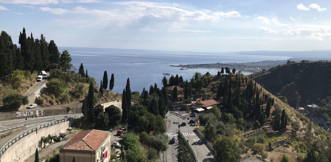 After lunch we drove from Catania to Taormina. The drive is about 45 minutes and the distance is about 34 miles.