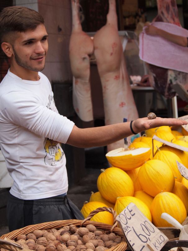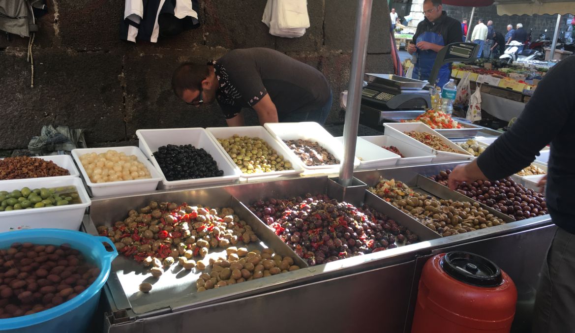 Beyond the fish stalls, you can find stalls selling fruits and other typical products of Catania on the perimeters of the fish market.