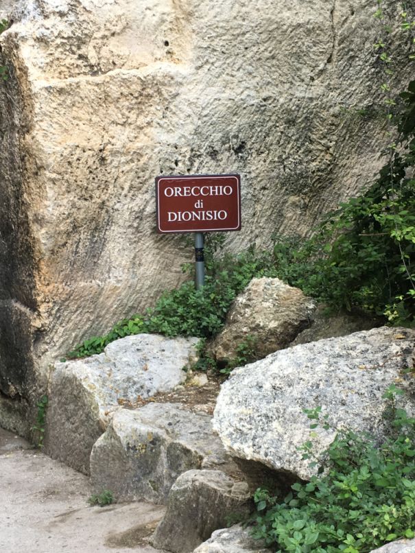 The Ear of Dionysius is a limestone cave carved out of the Temenites. Its name comes from its similarity in shape to the human ear.