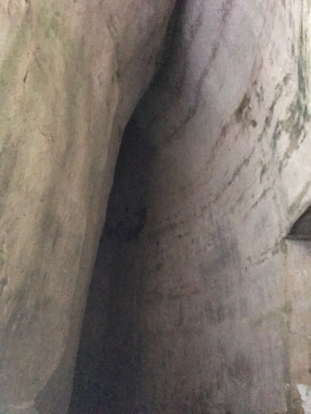 The small narrow tunnel is still visible on the top of this artificial cave. An earthquake struck this area causing damage, and the cave became unusable for water storage afterwards.