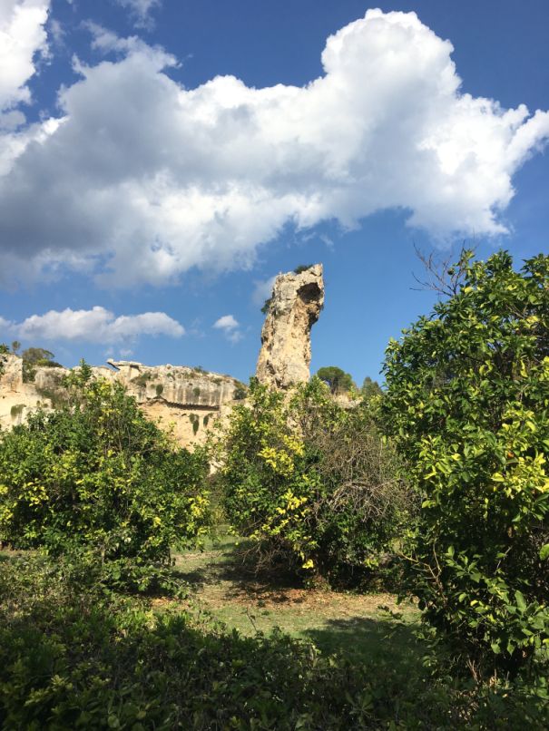 We are now entering the garden located in the Latomia del Paradiso (Paradise Quarry). this former limestone quarry is now a very green and peaceful area that is filled with lemon and orange trees.