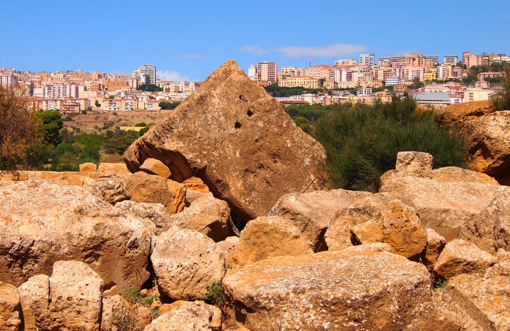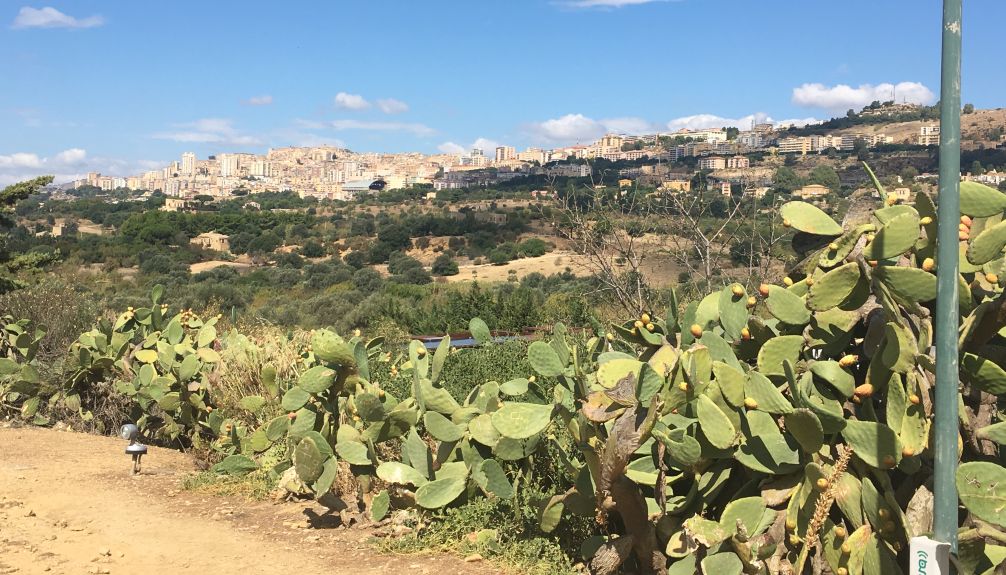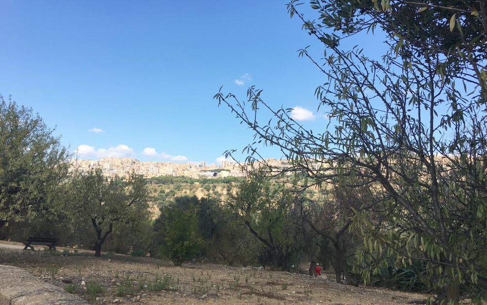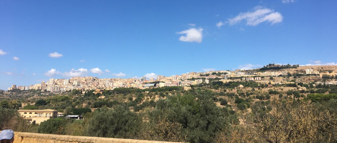 Gorgeous view of the city of Agrigento from the Valley of the temples.