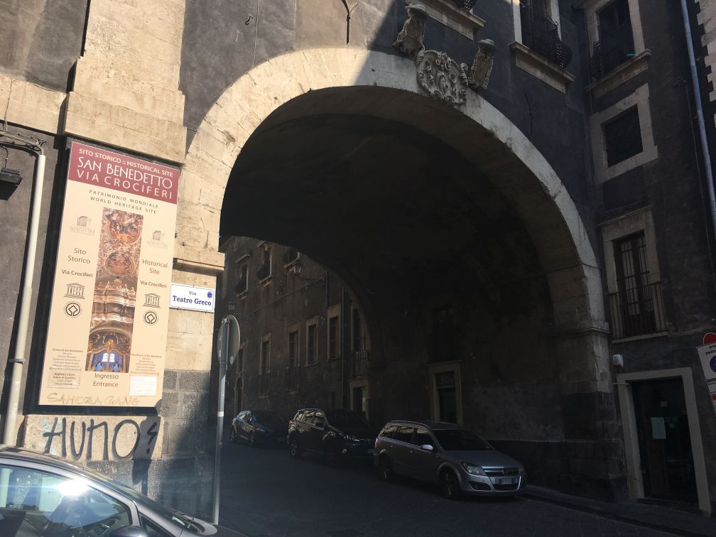 The reconstruction at the end of the 17th century determined the incorporation of the actual small abbey, through the construction of the archway in 1704 by the Benedictines. As time went by, the Arch way became the symbol of the city as well as the entrance gate to the entire street.