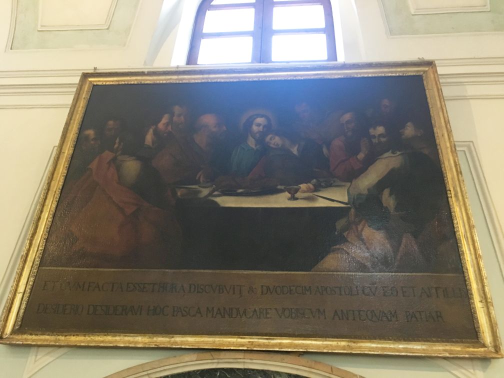 A large painting with Jesus depicting the last supper with his disciples is hung in the middle of the main wall.