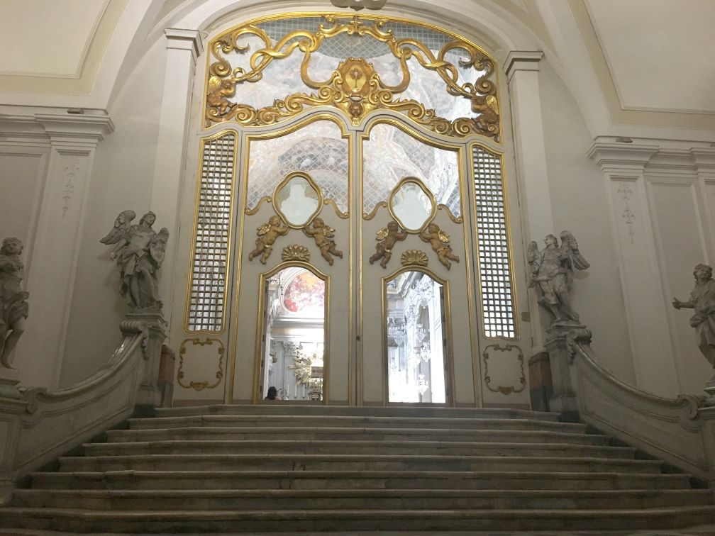 The famous Angel's Staircase is a marble entrance stair decorated with statues of angels.