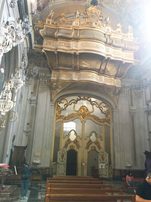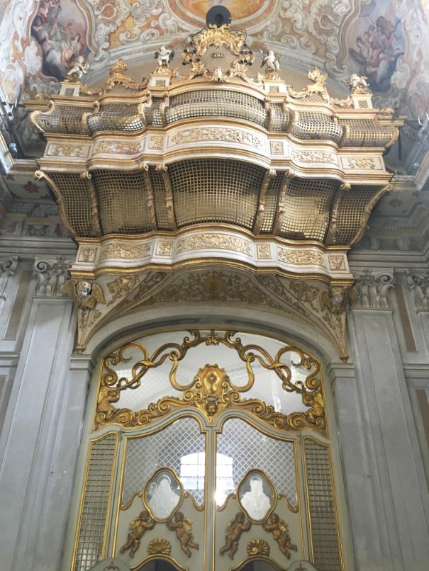 The nun's choir created circa 1750, which was designed in such a way that the nuns' voices could be heard during services, but the nuns themselves were still quite separate from and unseen by the less spiritual world outside.