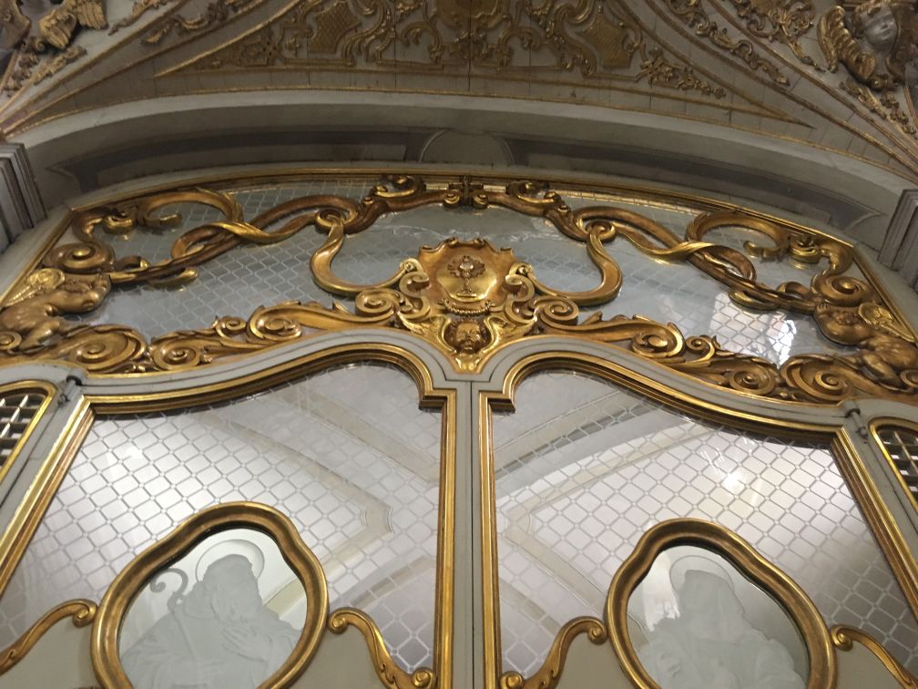 We are now leaving the church, this is the exit/entrance door with gold inlay.